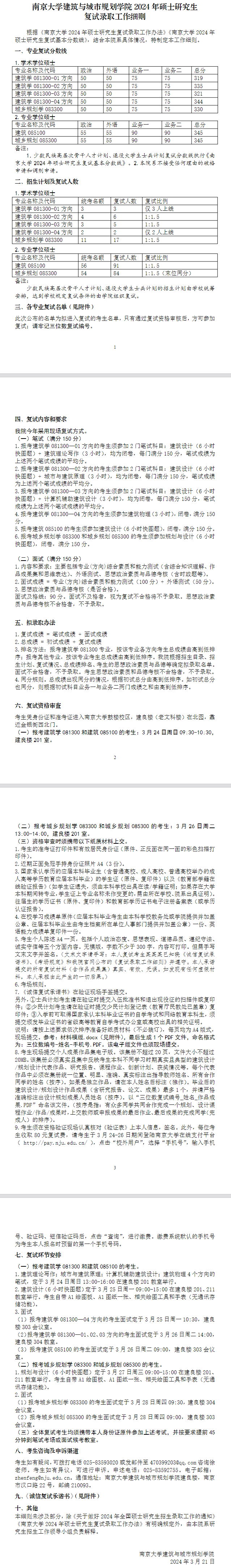 2024年南京大学建筑与城市规划学院硕士复试细则