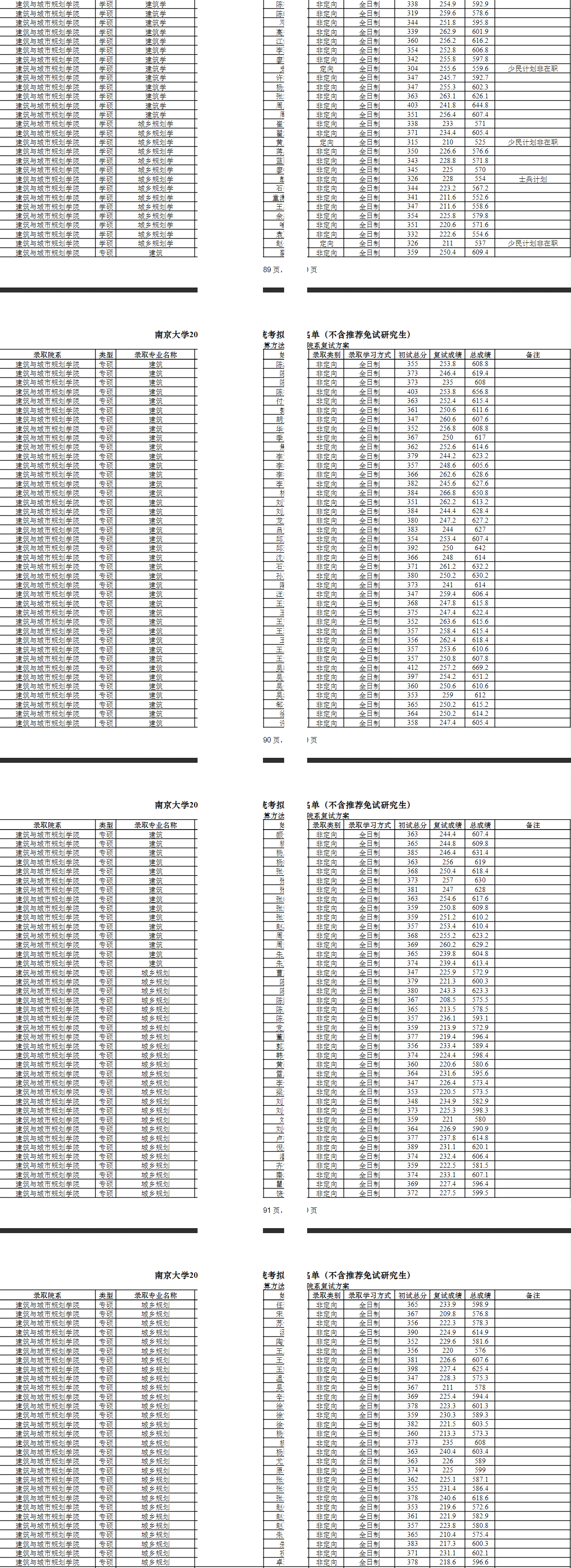 2024年南京大学建筑与城市规划学院硕士研究生拟录取名单