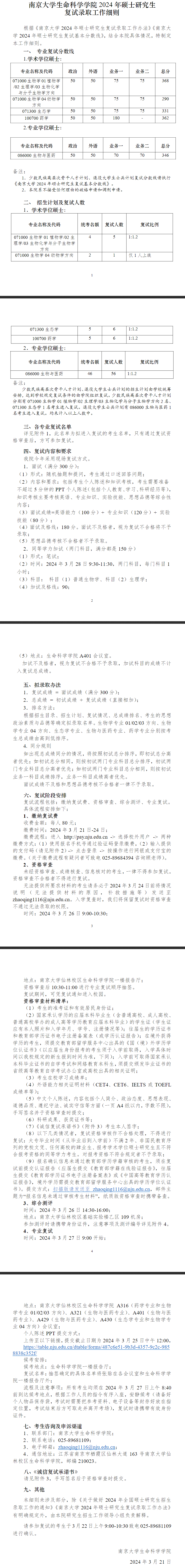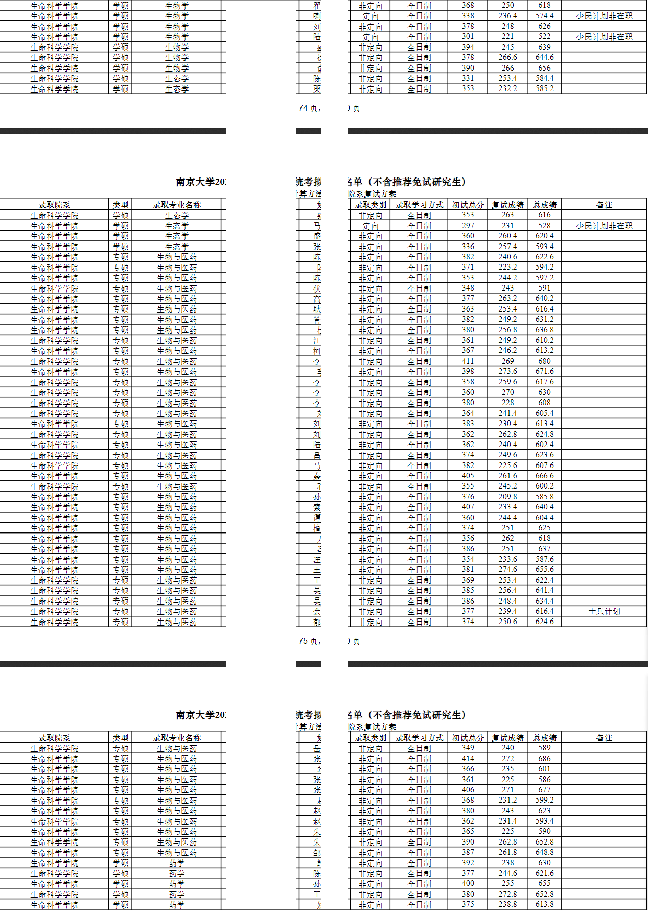 2024年南京大学生命科学学院硕士研究生拟录取名单
