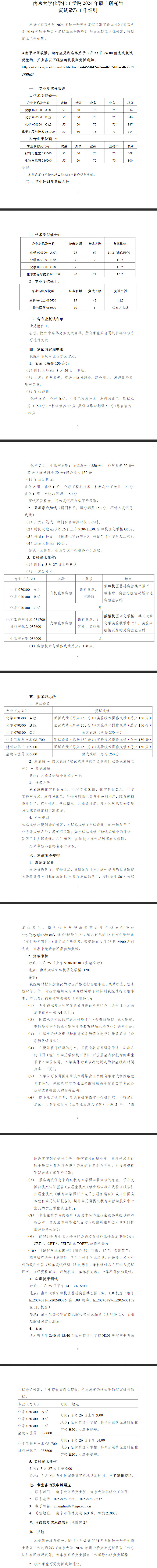 2024年南京大学化学化工学院硕士复试细则