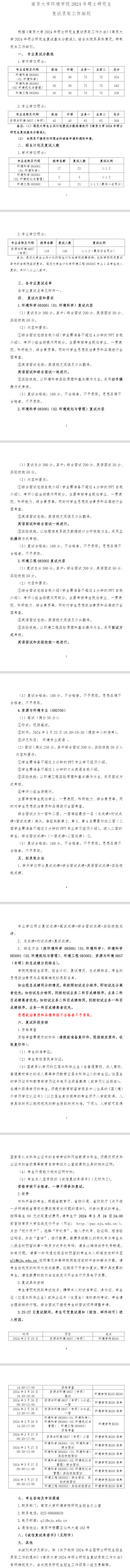 2024年南京大学环境学院硕士复试细则