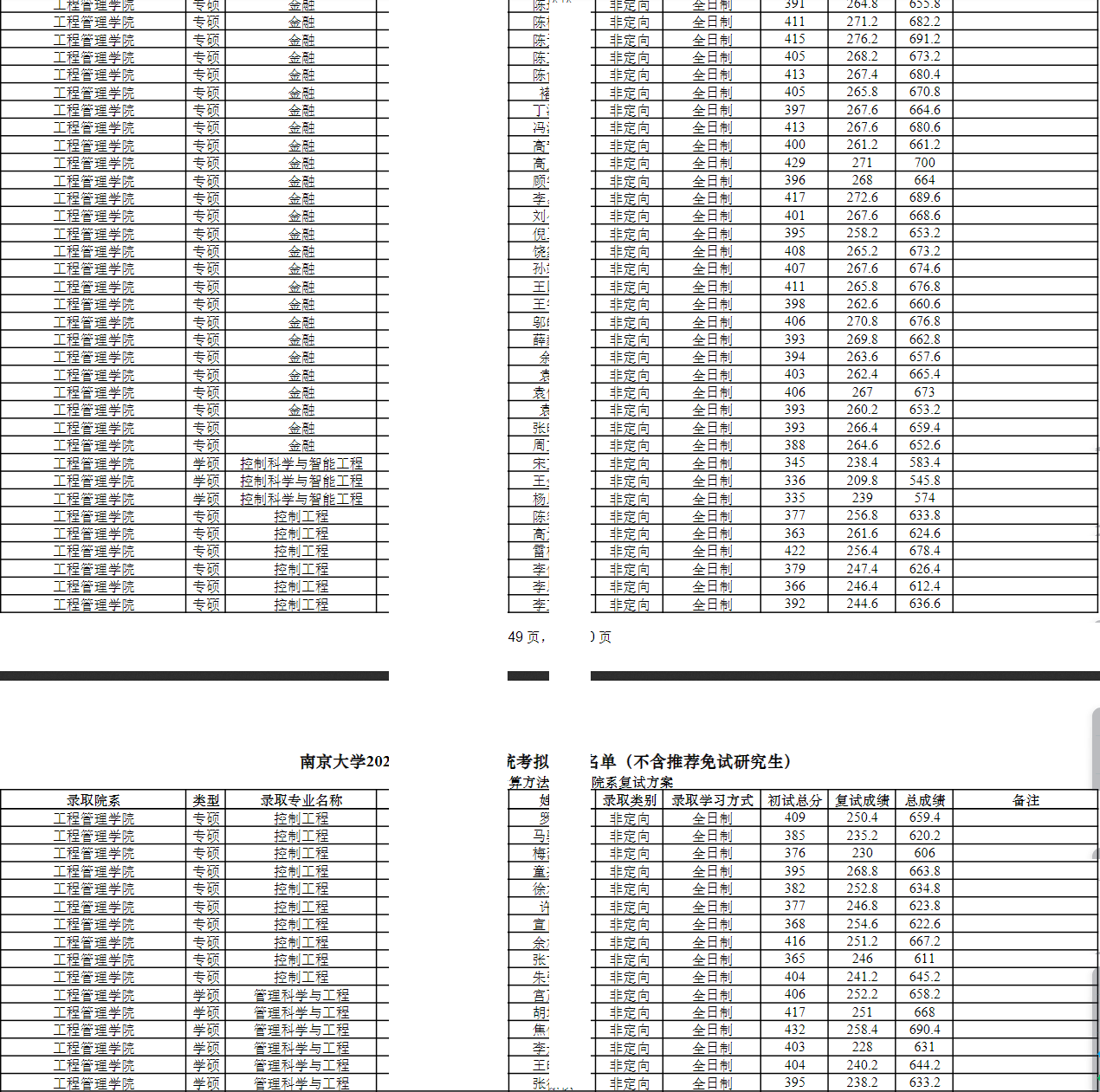 2024年南京大学工程管理学院硕士研究生拟录取名单
