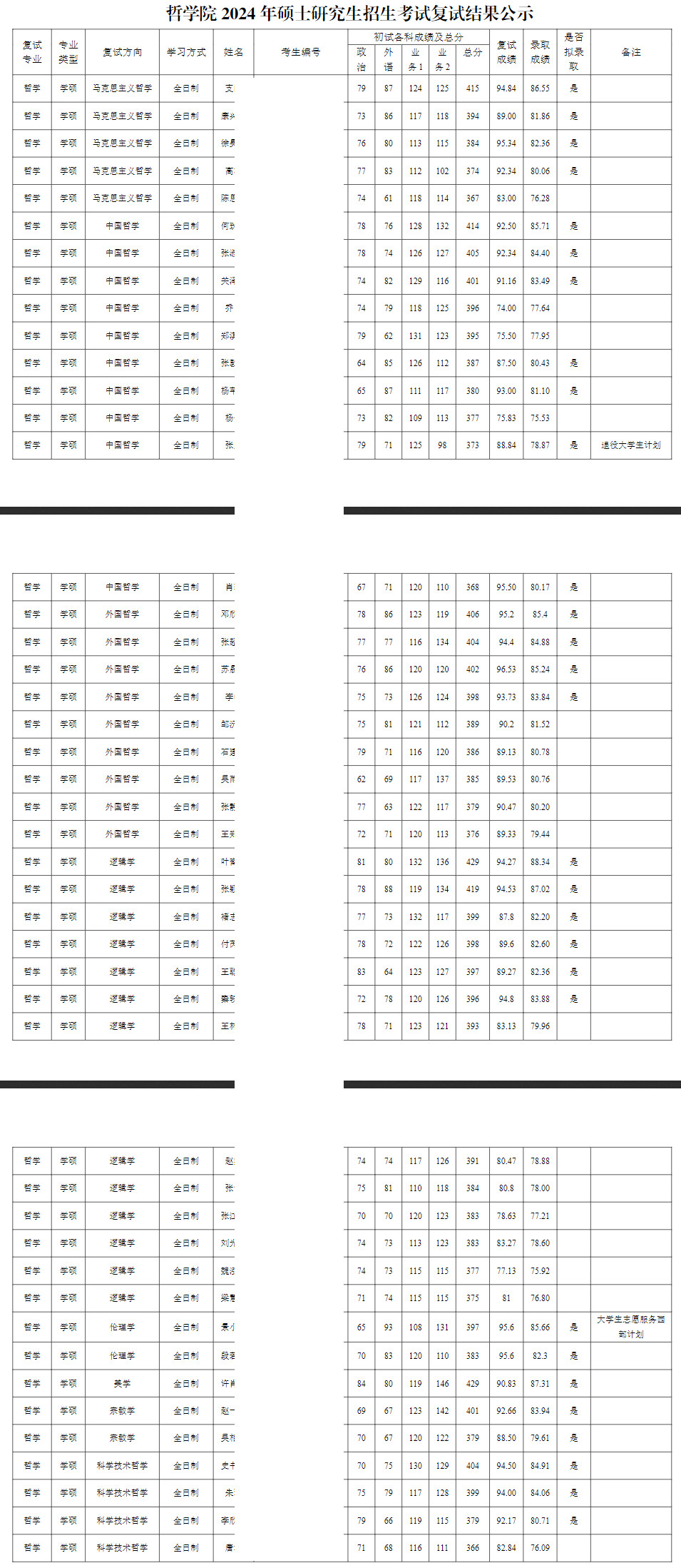 2024年南开大学哲学院硕士研究生拟录取名单
