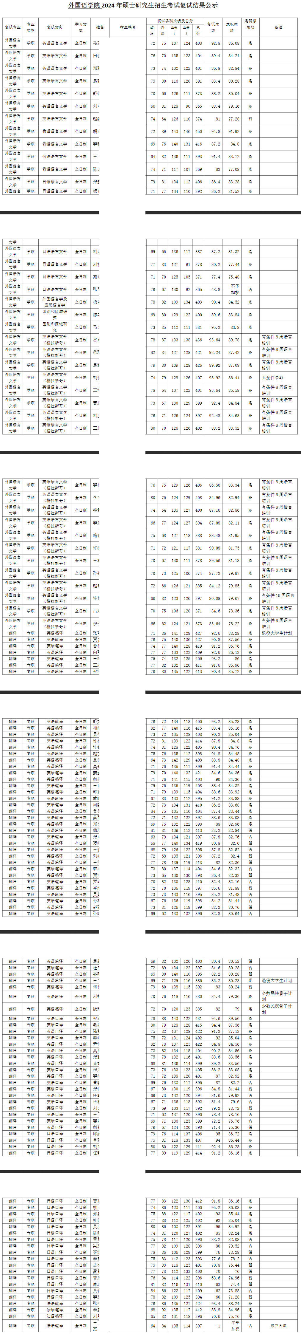 2024年南开大学外国语学院硕士研究生拟录取名单