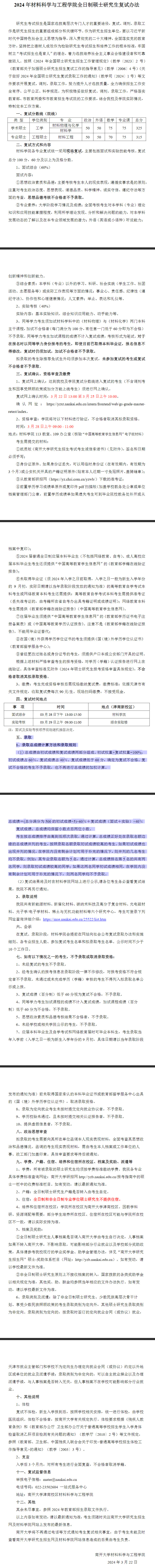 2024年南开大学材料科学与工程学院硕士复试细则