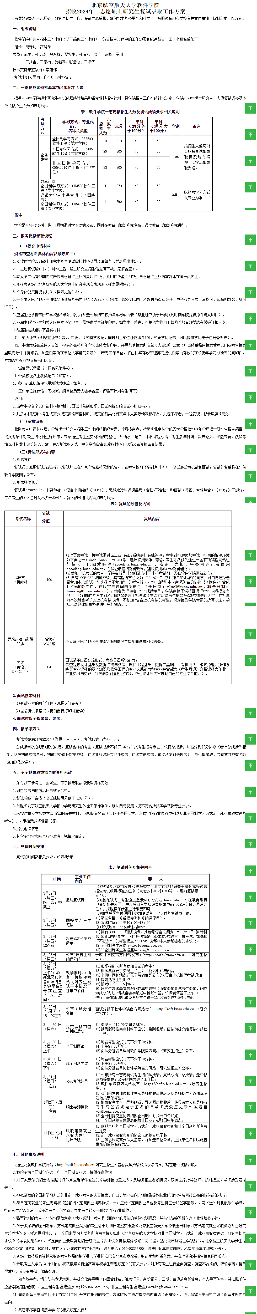 2024年北京航空航天大学软件学院硕士复试分数线及复试细则