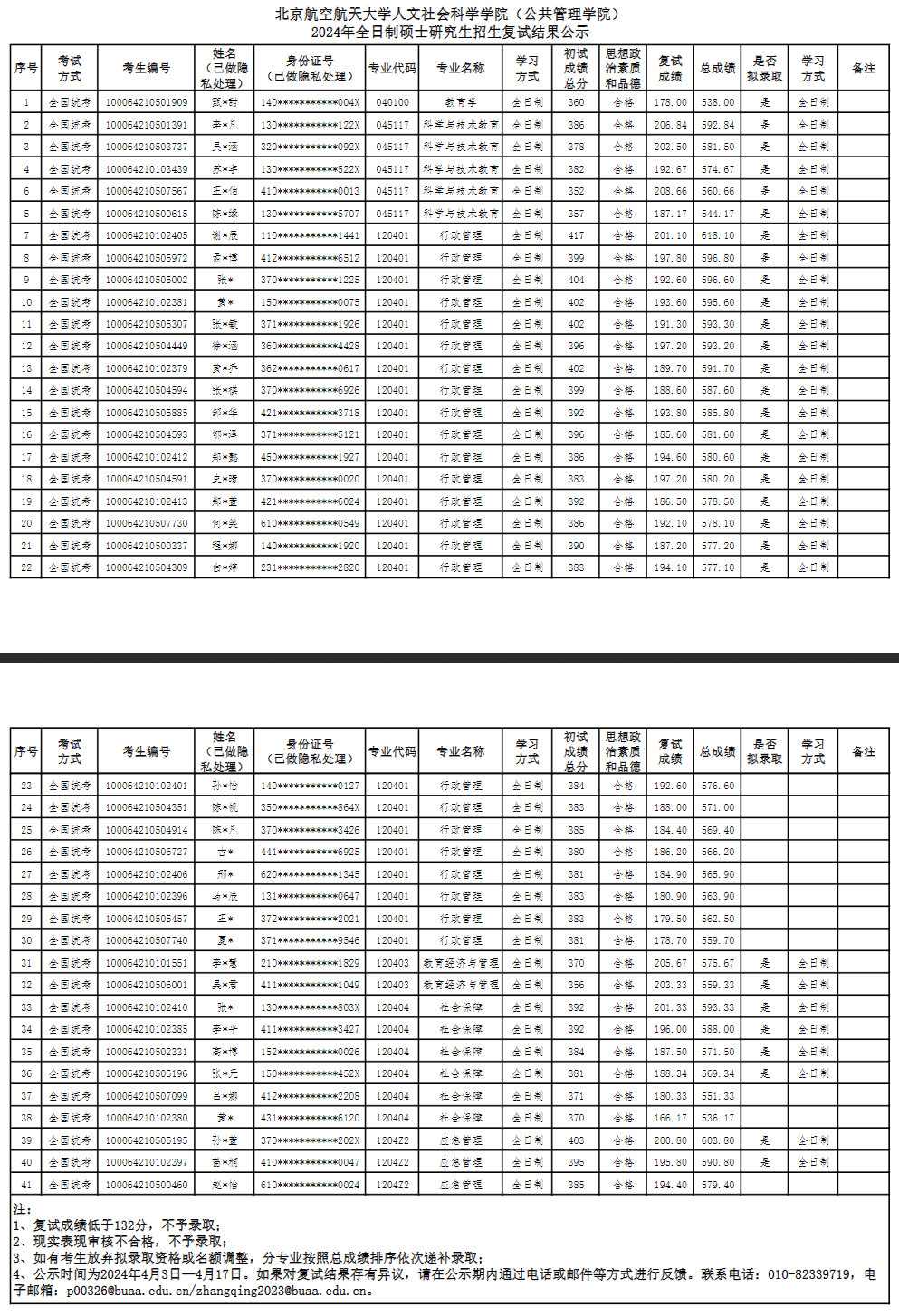 2024年北京航空航天大学人文社会科学学院硕士研究生拟录取名