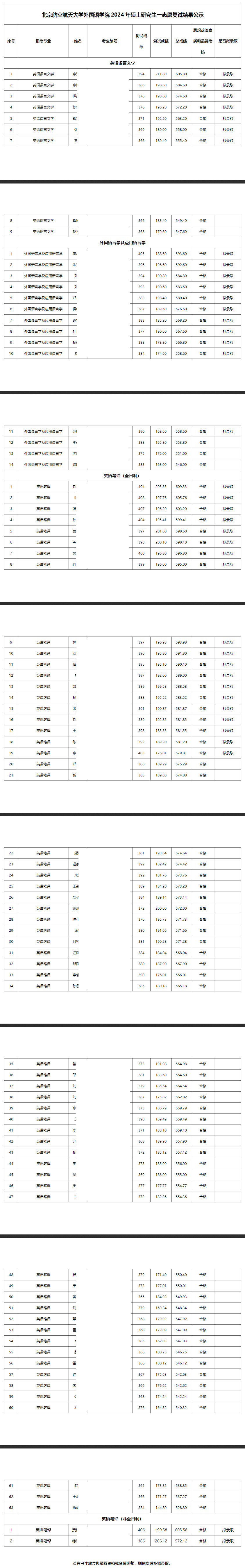 2024年北京航空航天大学外国语学院硕士研究生拟录取名单