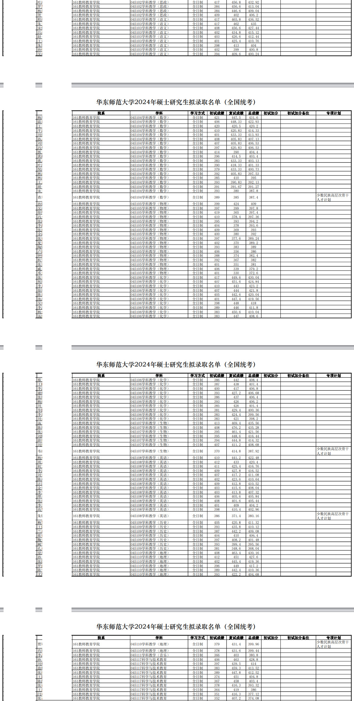 2024年华东师范大学教师教育学院硕士研究生拟录取名单