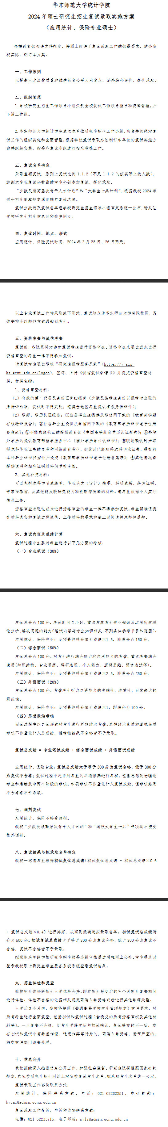 2024年华东师范大学统计学院硕士复试细则