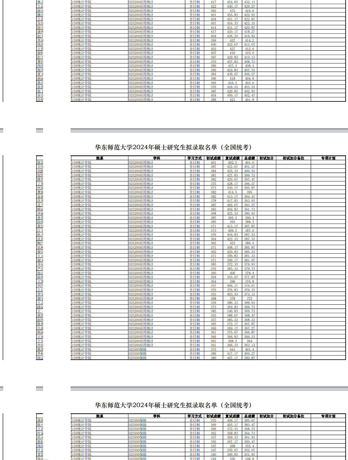 2024年华东师范大学统计学院硕士研究生拟录取名单
