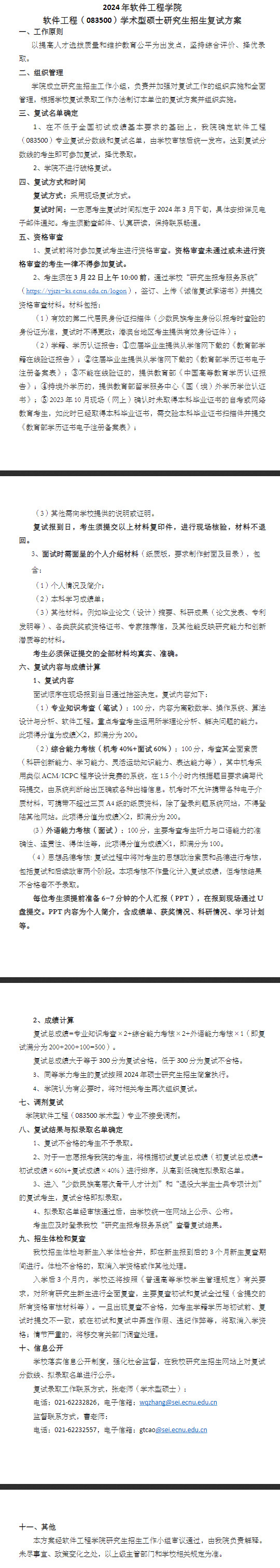 2024年华东师范大学软件工程学院硕士复试细则