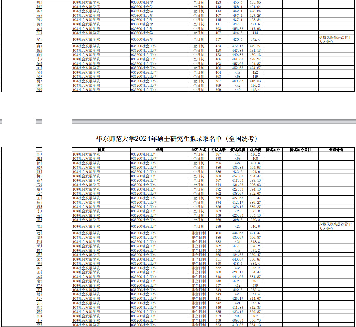 2024年华东师范大学社会发展学院硕士研究生拟录取名单