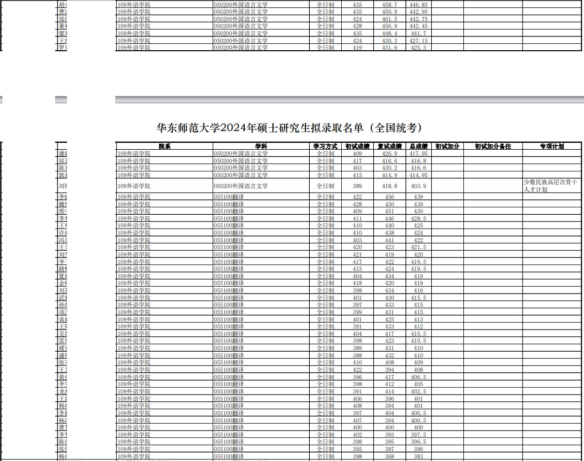 2024年华东师范大学外语学院硕士研究生拟录取名单