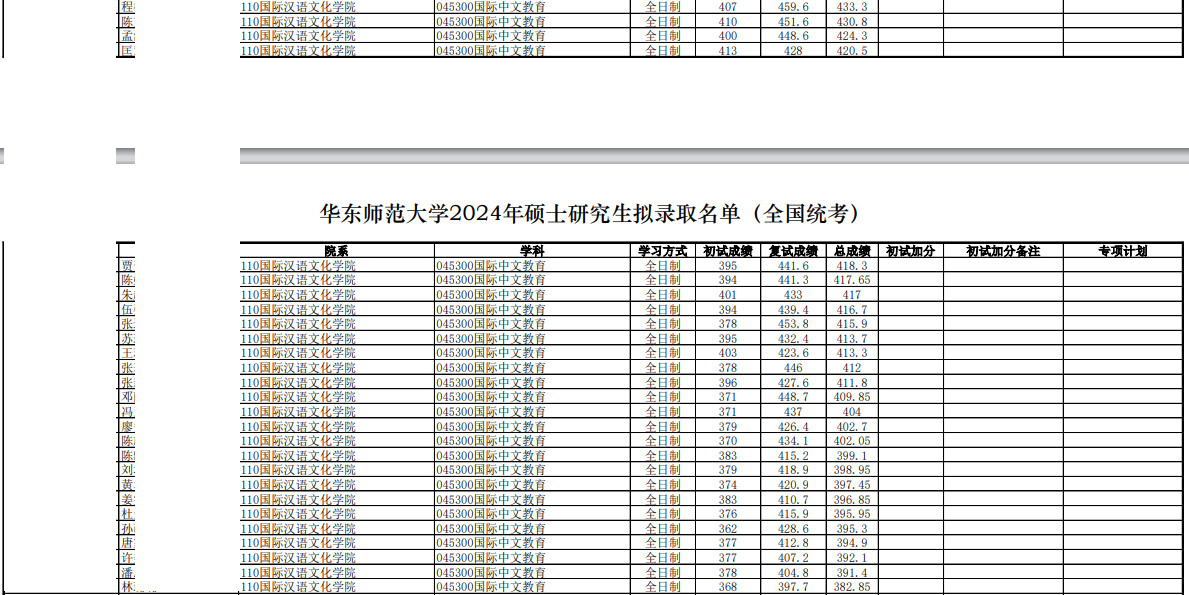 2024年华东师范大学国际汉语文化学院硕士研究生拟录取名单