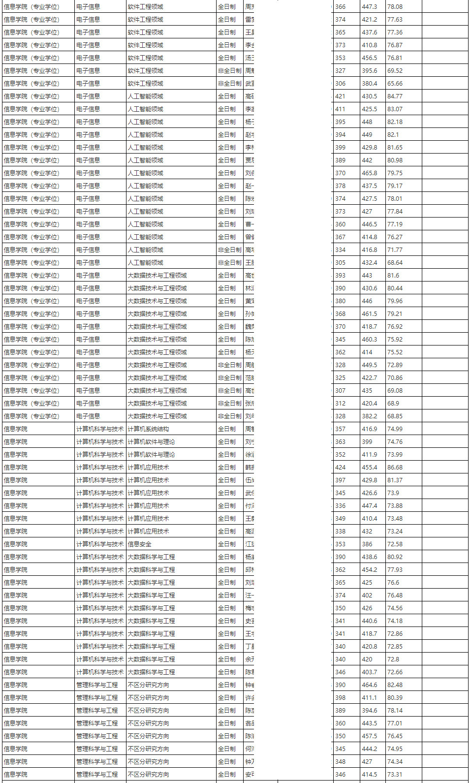 2024年中国人民大学信息学院硕士研究生拟录取名单