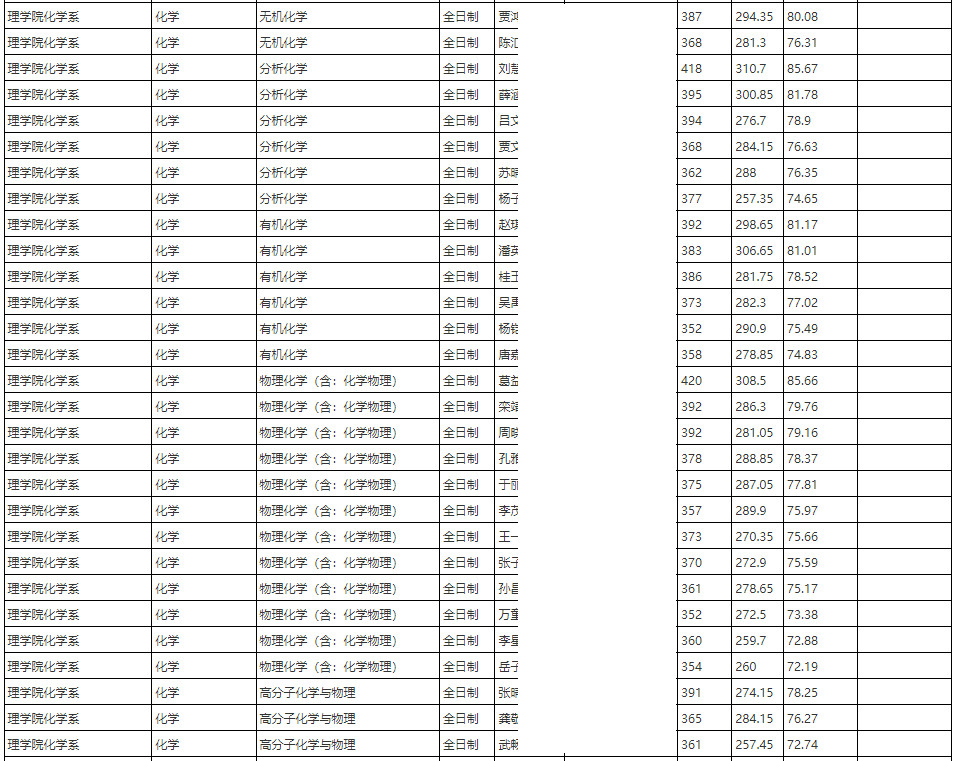 2024年中国人民大学理学院化学系硕士研究生拟录取名单