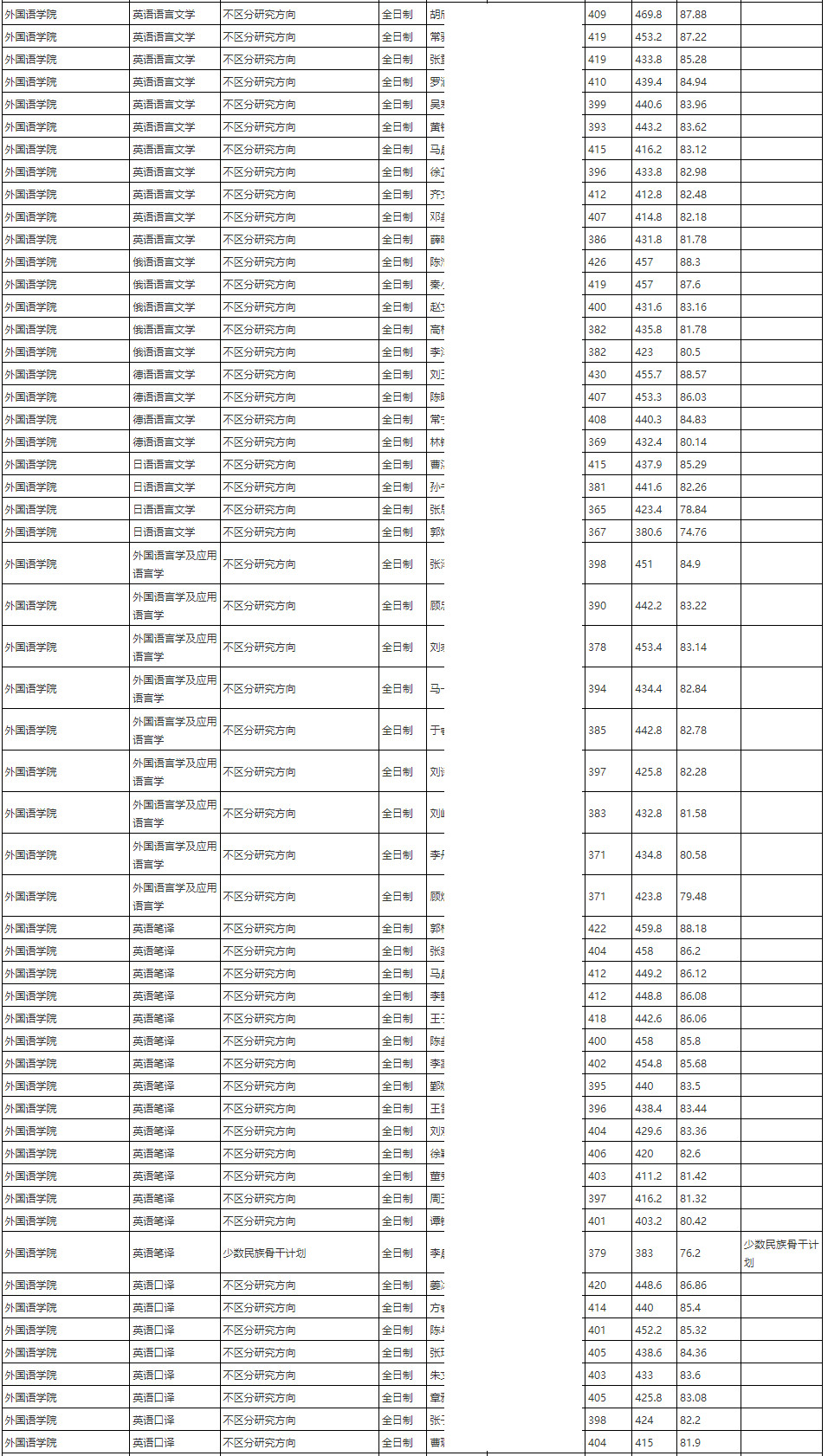 2024年中国人民大学外国语学院硕士研究生拟录取名单