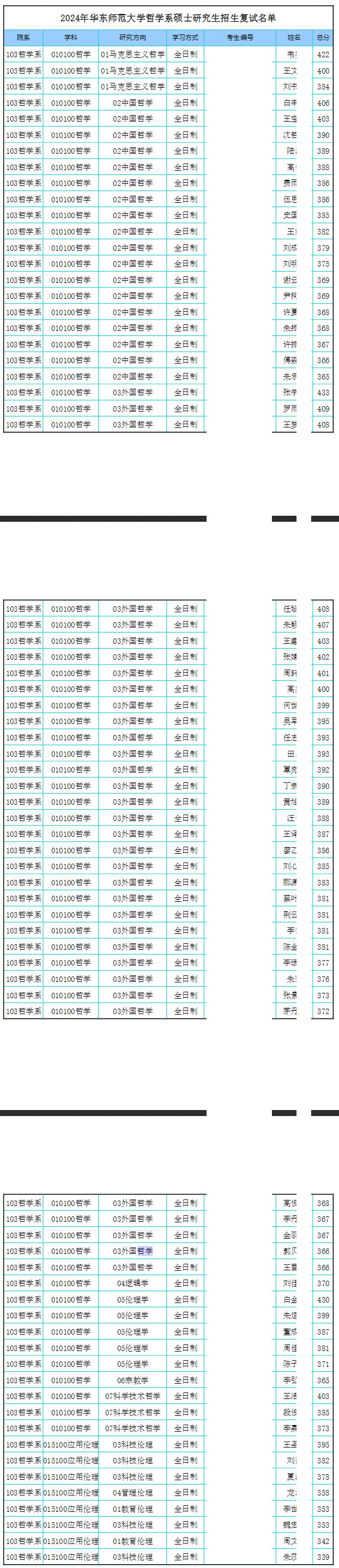2024年华东师范大学哲学系硕士研究生拟录取名单
