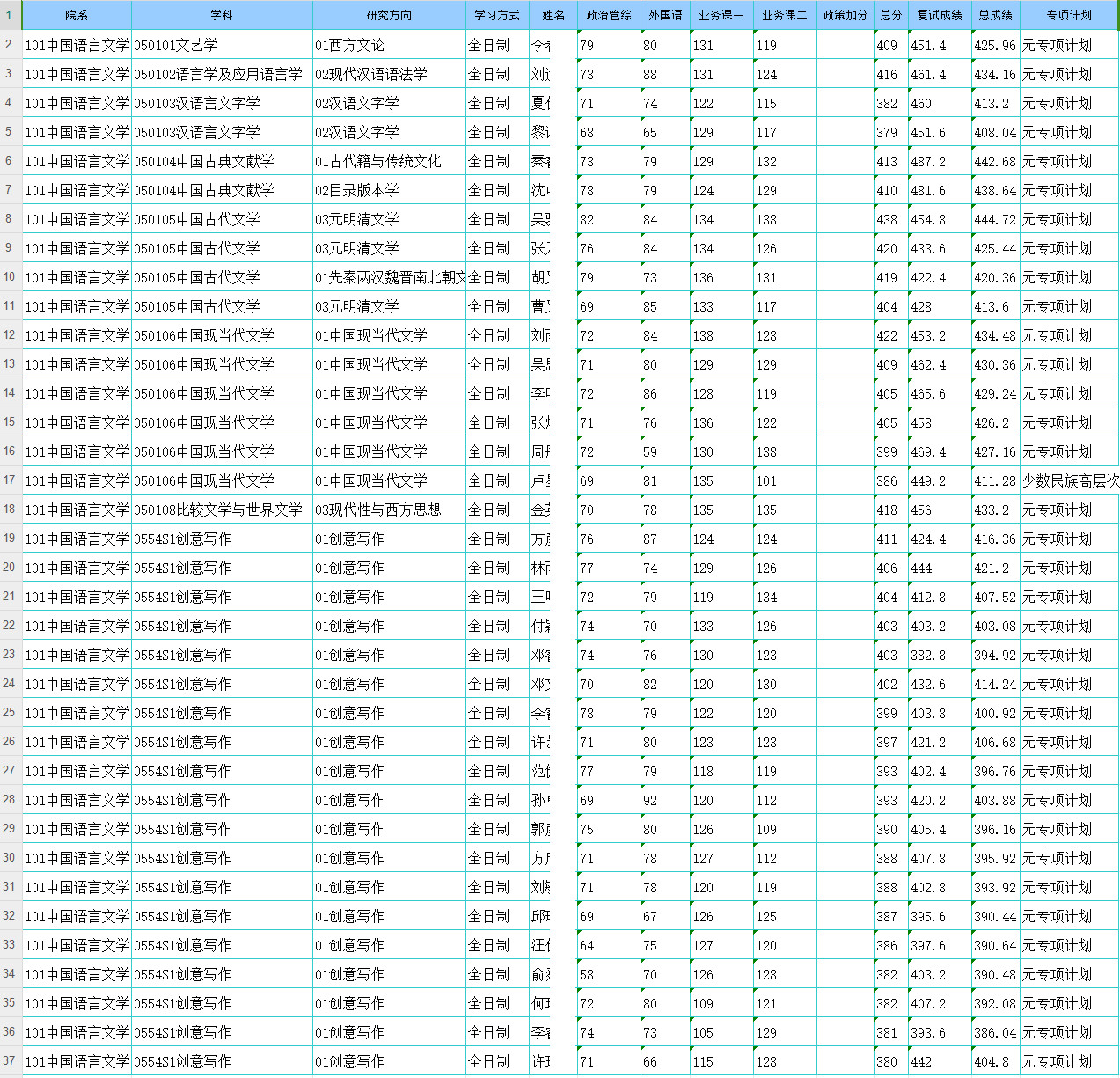 2024年华东师范大学中国语言文学系硕士研究生拟录取名单