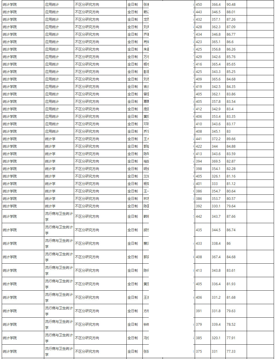 2024年中国人民大学统计学院硕士研究生拟录取名单