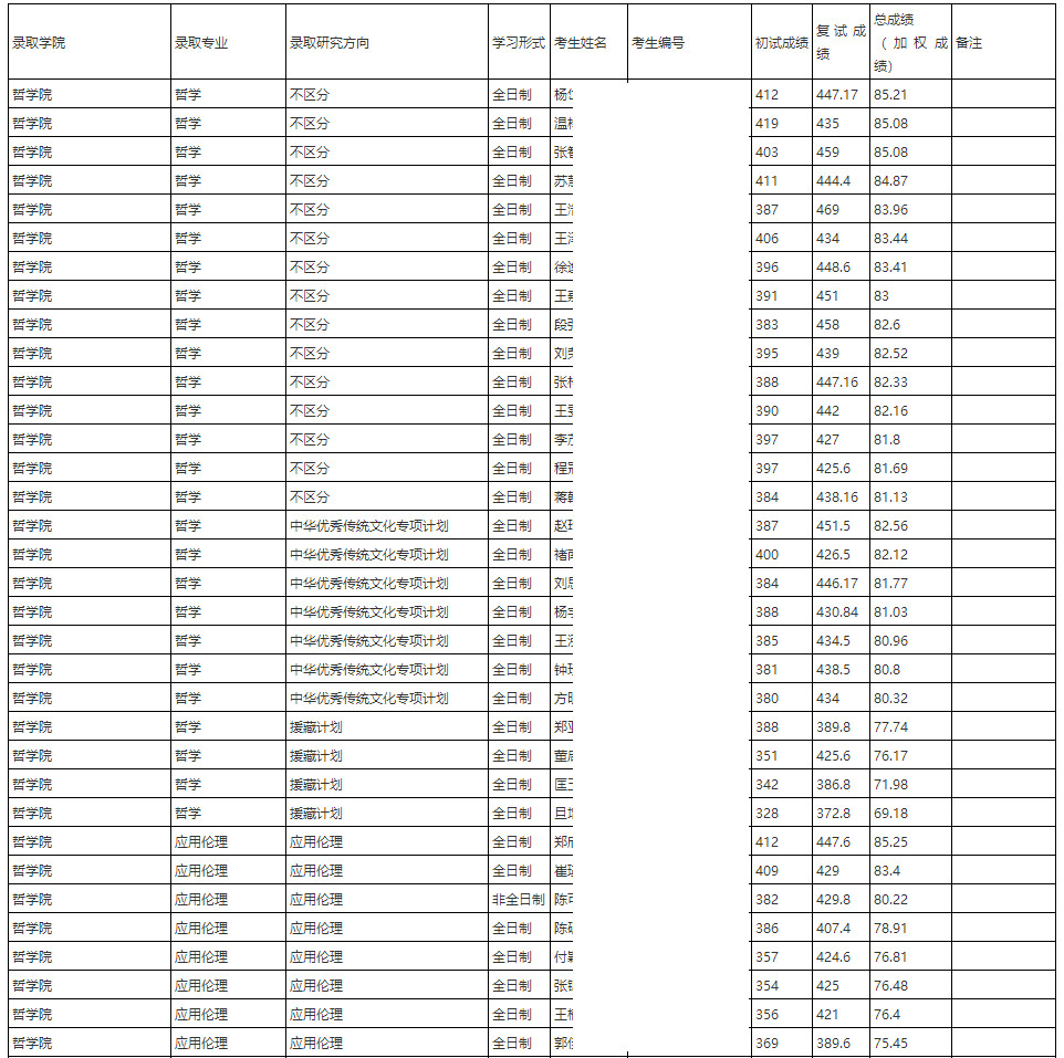 2024年中国人民大学哲学院硕士研究生拟录取名单