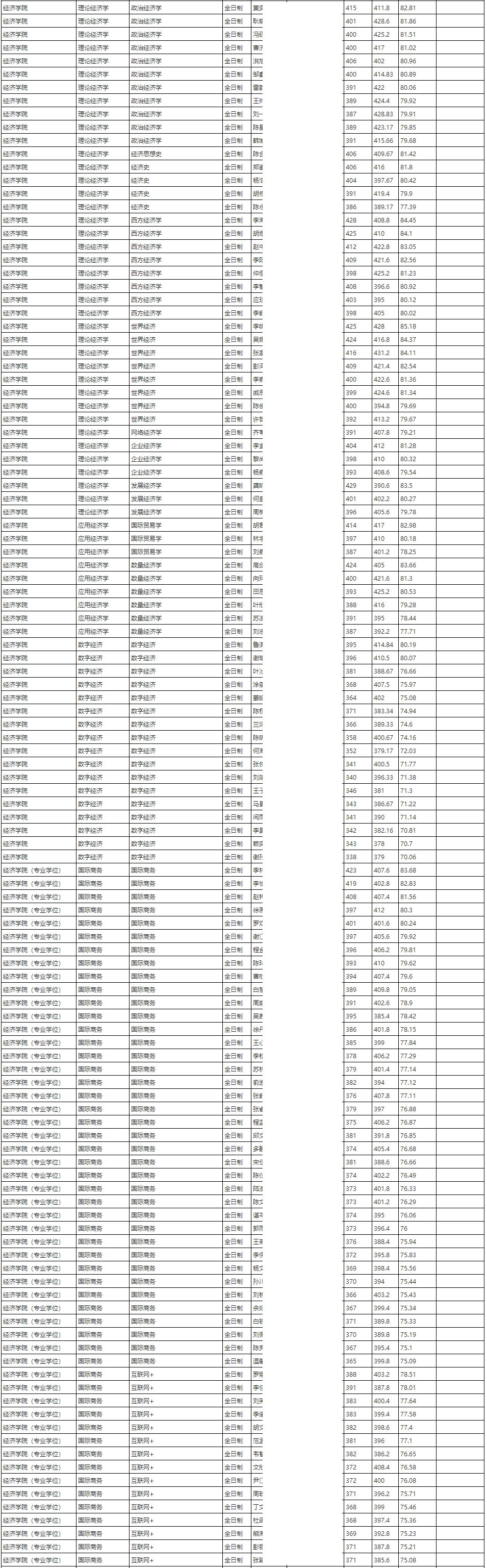 2024年中国人民大学经济学院硕士研究生拟录取名单