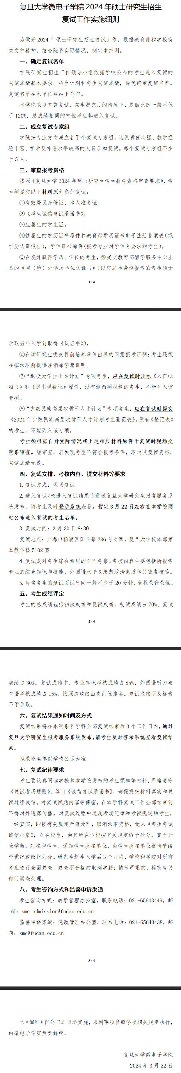 2024年复旦大学微电子学院硕士复试细则