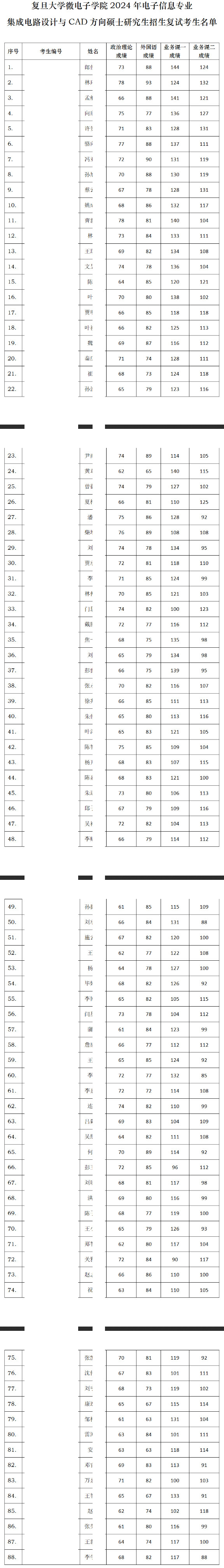 2024年复旦大学微电子学院硕士复试名单