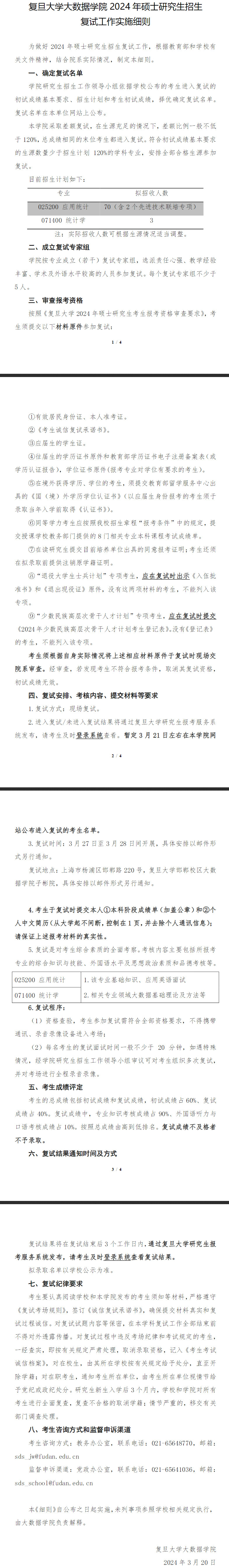 复旦大学软件学院2024年非全日制硕士研究生招生复试工作实施细则为做好2024年硕士研究生招生复试工作,根据教育部和学校...