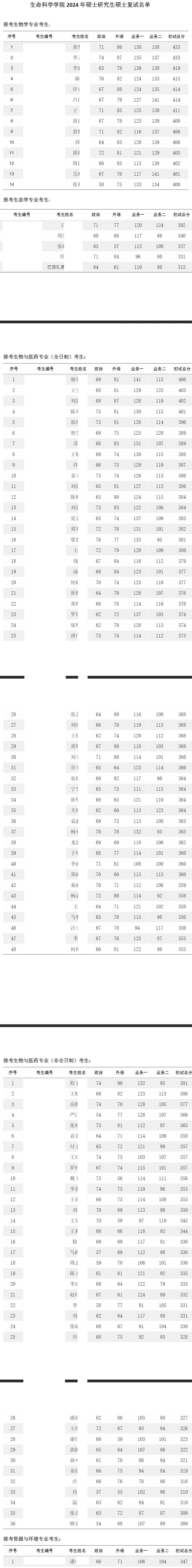 2024年复旦大学生命科学学院硕士复试名单