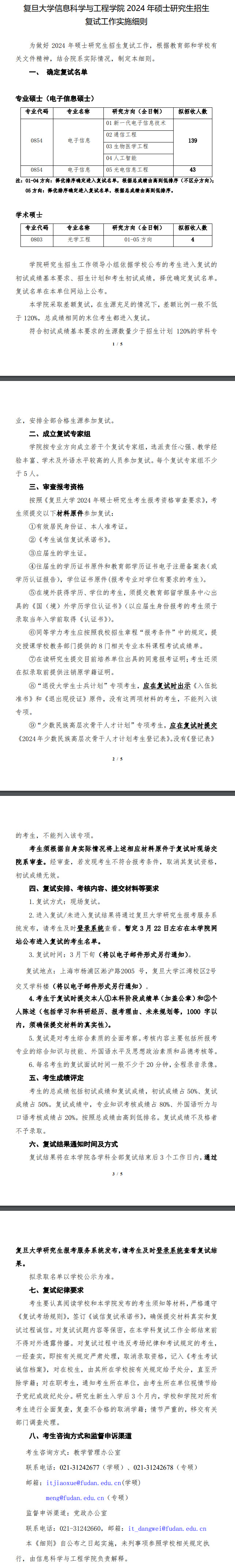 2024年复旦大学信息科学与工程学院 硕士复试细则