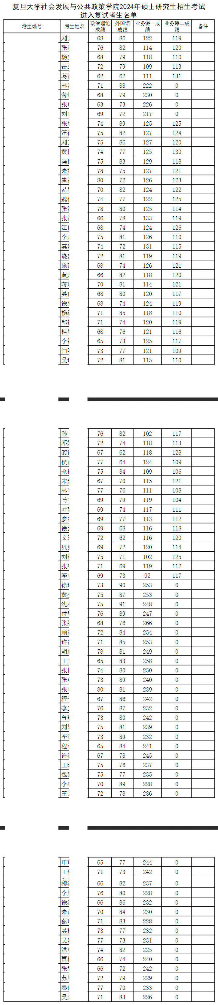 2024年复旦大学社会发展与公共政策学院硕士复试名单