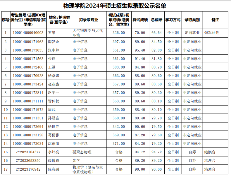 2024年北京大学建筑与景观设计学院硕士研究生拟录取名单