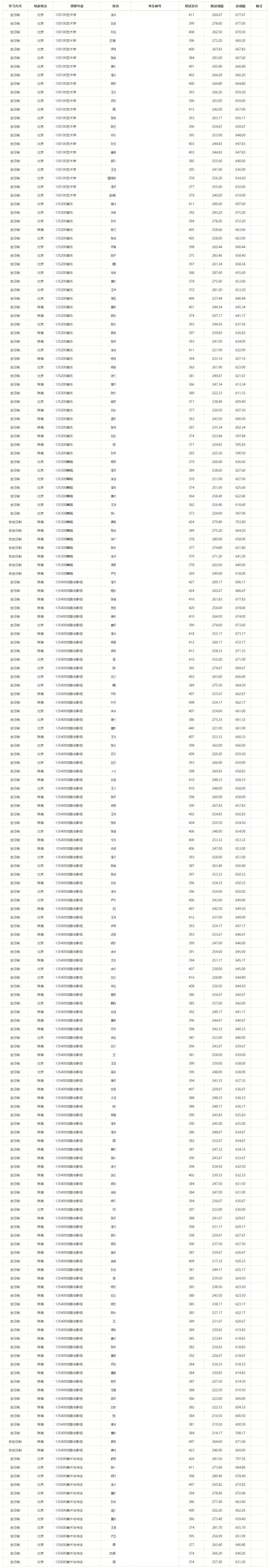2024年北京师范大学艺术与传媒学院硕士研究生拟录取名单