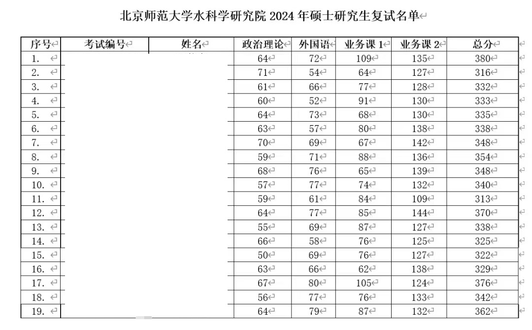 2024年北京师范大学水科学研究院硕士复试名单