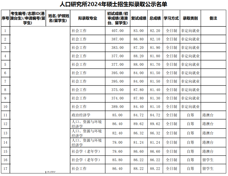 2024年北京大学人口研究所硕士研究生拟录取名单
