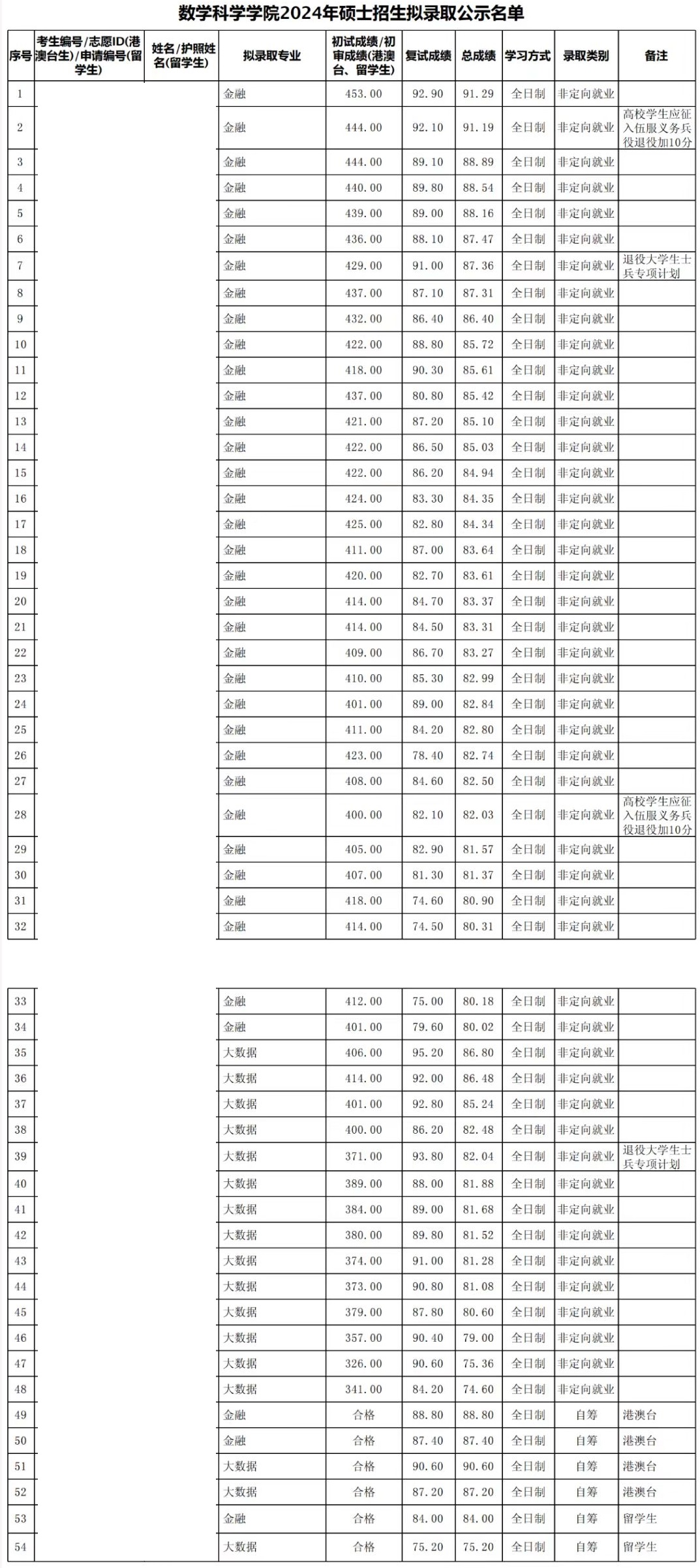 2024年北京大学数学科学学院硕士研究生拟录取名单