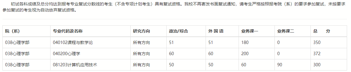 2024年北京师范大学心理学部硕士研究生招生复试分数线