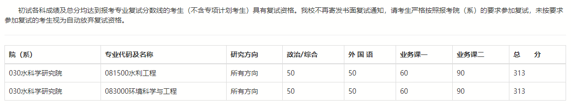 2024年北京师范大学水科学研究院硕士研究生招生复试分数线