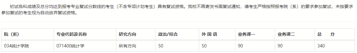 2024年北京师范大学统计学院硕士研究生招生复试分数线