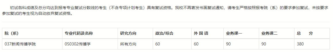 2024年北京师范大学新闻传播学院硕士研究生招生复试分数线