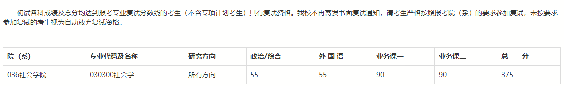 2024年北京师范大学社会学院硕士研究生招生复试分数线