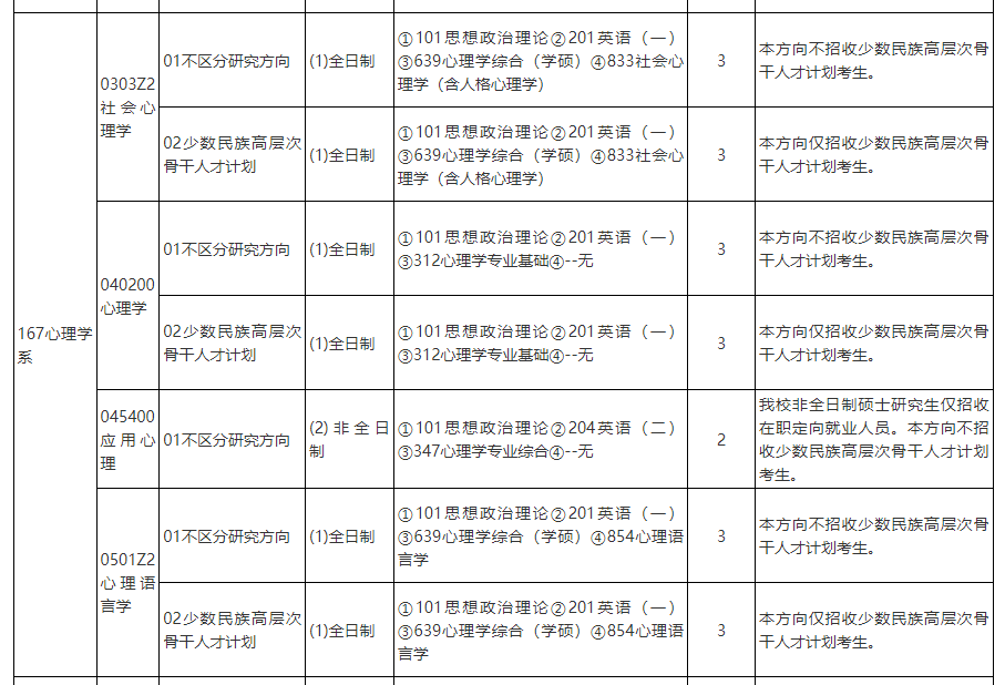 2025年中国人民大学心理学系硕士研究生招生专业目录