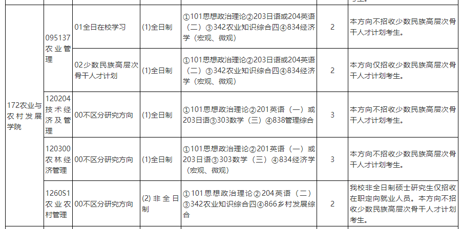 2025年中国人民大学农业与农村发展学院硕士研究生招生专业目
