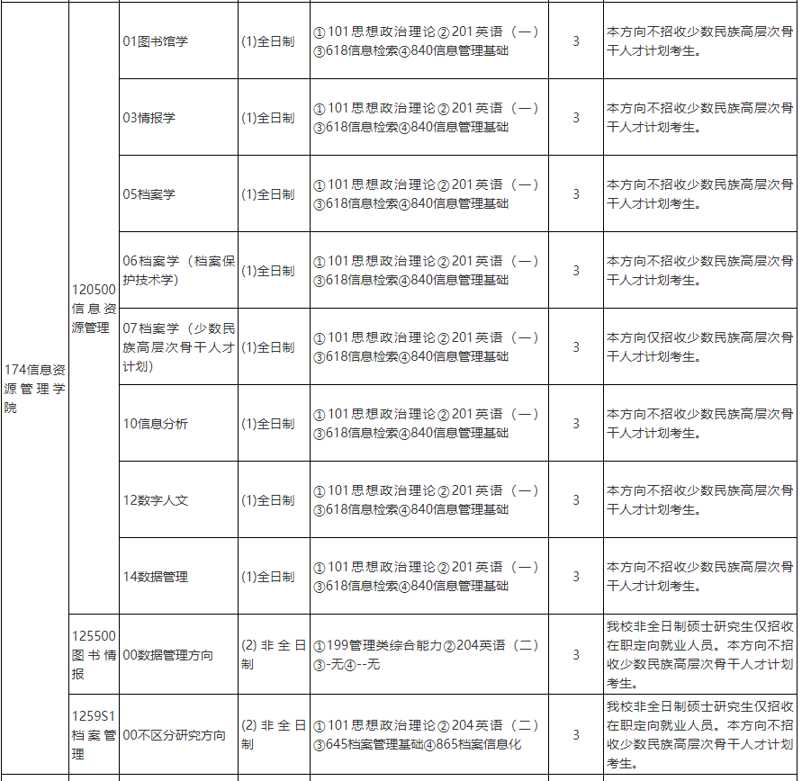 2025年中国人民大学信息资源管理学院硕士研究生招生专业目录