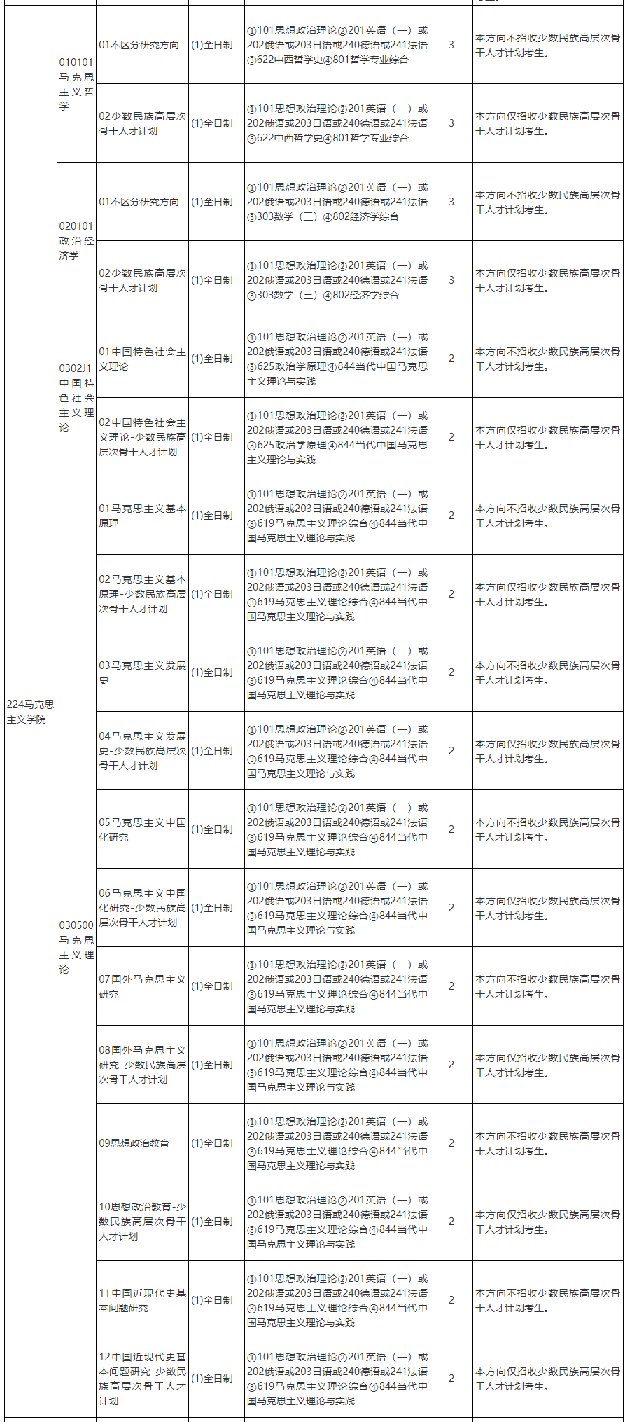 2025年中国人民大学马克思主义学院硕士研究生招生专业目录