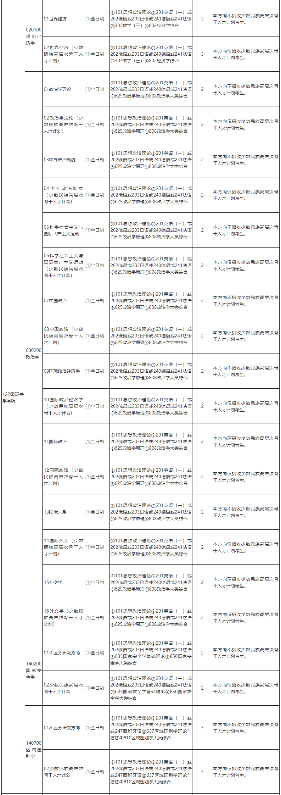 2025年中国人民大学国际关系学院硕士研究生招生专业目录