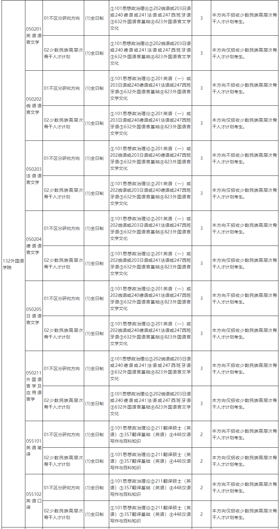 2025年中国人民大学外国语学院硕士研究生招生专业目录
