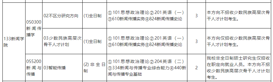 2025年中国人民大学新闻学院硕士研究生招生专业目录